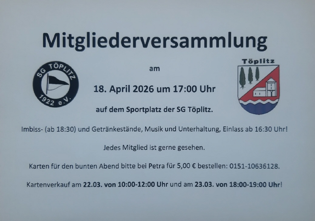 Am Samstag den 05.04.2025 fand sie nun statt. Die Mitgliederversammlung der SG Töplitz.