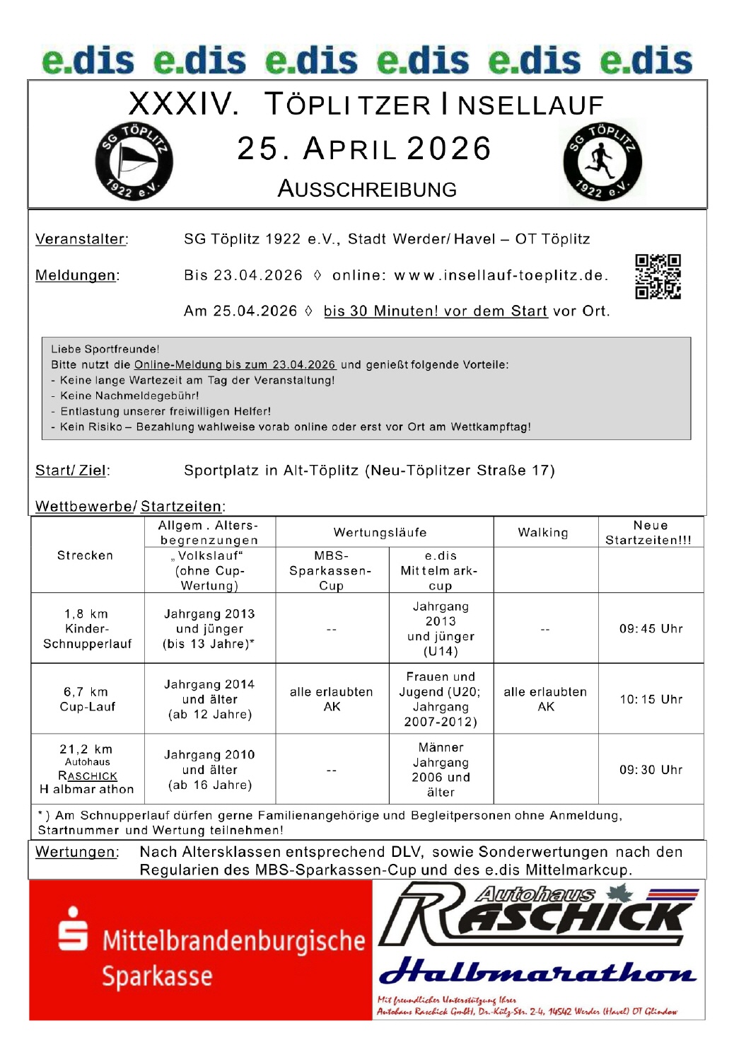 Da wären die Veranstaltungen des TKC, die Sporttage der Kita Töplitz und der Inselschule, das Sportfest der Polizei und einem Trainingslager der Kinder von der SG Bornim.